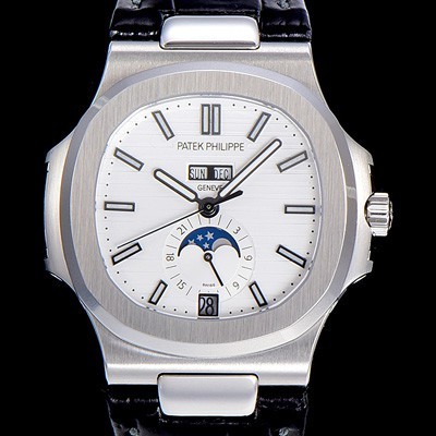 • 레플리카 [파텍필립] 남성용 노틸러스 5726/1A-014 오토매틱 Cal.324 타입 40미리 문페이즈 가죽줄/밴드 화이트다이얼 PAT75447
