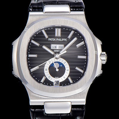 • 레플리카 [파텍필립] 남성용 노틸러스 5726/1A-014 오토매틱 Cal.324 타입 40미리 문페이즈 가죽줄/밴드 블랙다이얼 PAT75438