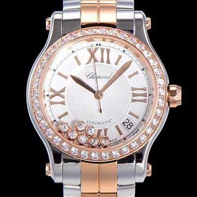 • 레플리카 [쇼파드] 여성용 해피 스포츠 36미리 오토매틱 ETA2892-2 18K 로즈골드 최상급 쥬얼셋팅 메탈시계 화이트다이얼 CHO73646