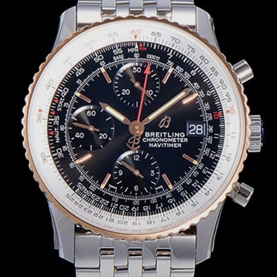 레플리카 [브라이틀링] 남성용 네비타이머 크로노그래프 오토매틱 A7750-2 41미리 메탈시계 투톤콤비 18K로즈골드 블랙다이얼 BRE75674