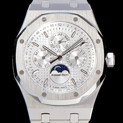 레플리카 [오데마피게] 남성용 로얄오크 페퍼츄얼 41미리 오토매틱 5134타입 매탈줄 문페이즈 화이트다이얼 AUD74477
