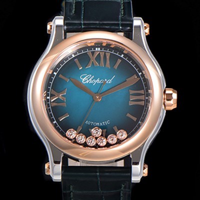 • 레플리카 [쇼파드] 여성용 해피 스포츠 오토매틱 ETA2892-2 타입 36mm 래이디스/금장시계 18K로즈골드 가죽줄 블루다이얼 cho74208
