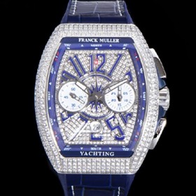 • 레플리카 [프랭크뮬러] 남성용 뉴 사라토거 오토매틱 크로노그래프 A7750-2타입 44mm 보석/다이아셋팅 가죽줄 보석다이얼 fra19026