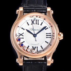 • 레플리카 [쇼파드] 여성용 해피스포츠 다이아몬드 오토매틱 A2892-2 타입 30mm 금장시계 가죽줄 화이트다이얼 cho70316