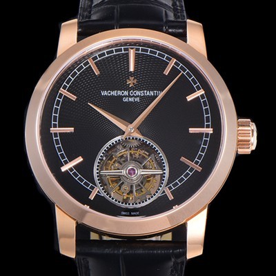 • 레플리카 [바쉐런콘스탄틴] 남성용 트레디셔널 투어빌론 수동기계식 18K 로즈골드 42mm 가죽줄 블랙다이얼 vac23180