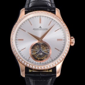예거르꿀트르 마스터 그랜드 트레디션 오토매틱 투어빌론 798타입 42mm 남성용시계 18K 로즈골드 보석다이아드베젤 가죽시계 실버다이얼  jag025303476
