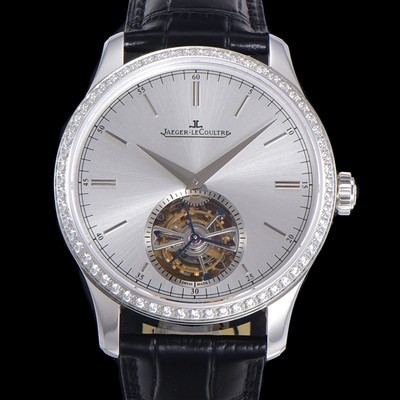 예거르꿀트르 마스터 그랜드 트레디션 오토매틱 투어빌론 798타입 42mm 남성용시계 보석다이아드베젤 가죽시계 실버다이얼  jag025018462