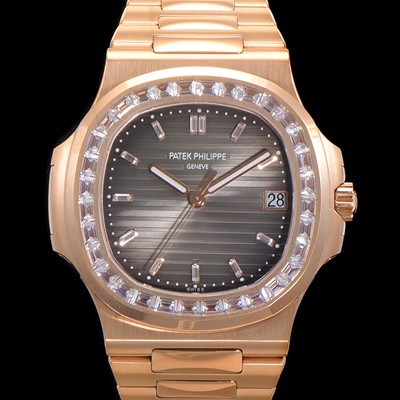 Patek Philippe Men's Nautilus Gemstone/Cubic Setting 18k Rose Gold Cal.324 S Type C Move Automatic 40mm Brown Dial
