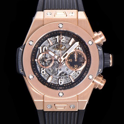 • 레플리카 [휴블렛] 남성용 빅뱅 유니코 킹골드 크로노그래프 421.OX.5180.RX 로즈골드 HUB1280 오토매틱 므브먼트 44mm 러버밴드 스켈레톤 다이얼 hub38959