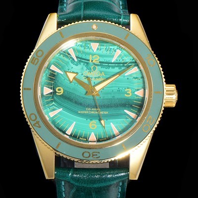 레플리카 [오메가]남성용 2021 씨마스터 300 Co-Axial 크로노미터 234.63.41.21.99.001 옐로우골드 오토매틱 므브먼트 41mm 그린다이얼 OMG12800