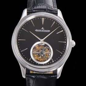 레플리카 [예거 르꿀르뜨] 남성용 마스터 울트라 씬 투어빌론 43mm 가죽줄 블랙다이얼 jag9125