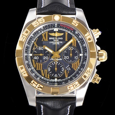 • 레플리카 [브라이틀링] 남성용 원드라이더 크로노맷 오토매틱 ETA-7750 기계식 44mm 18K 옐루골드 가죽줄 블랙다이얼 bre1951