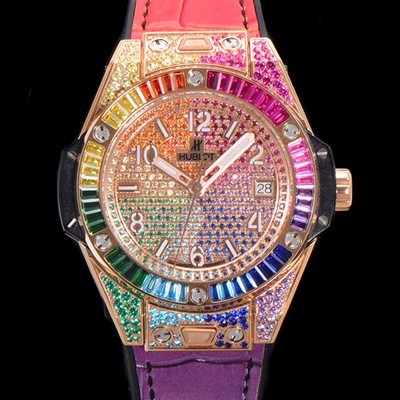 • 레플리카 [휴블렛] 남여공용 빅뱅 오토매틱 HUB1710타입 39mm 다이아/보석 세팅 로즈골드 우레탄/가죽 믹스밴드 보석다이얼 hub9131