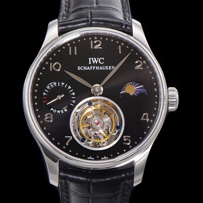 IWC Portuguese Tourbillon Moonphase Power Reserve Asian Tourbillon 42mm Mens Black Dial
