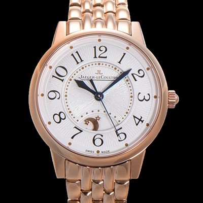 레플리카 [예거 르꿀르뜨] 여성용 랑데뷰 나잇&데이 문페이즈 오토매틱 898A 타입 무브 34mm 금장시계 화이트다이얼 jag9115