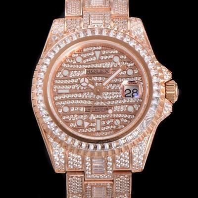 레플리카 [로렉스] 남성용 지엠티-마스터 오토매틱 E2836-2 타입 18K 로즈골드/풀다이아몬드 셋팅 41mm 메탈줄 골드/다이아몬드 다이얼 rol1299 요약정보 및 구매