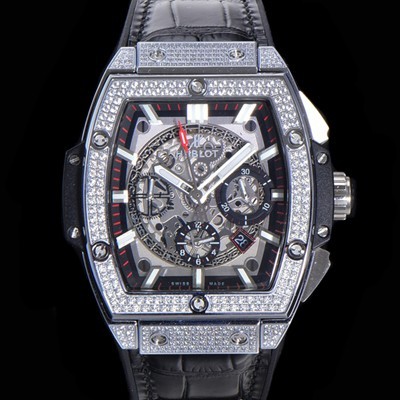 • 레플리카 [휴블렛] 남성용 스피릿 빅뱅 마스터피스 크로노그래프 Hub4700타입 45mm 다이아몬드 셋팅 가죽줄 스켈래톤다이얼 hub3199