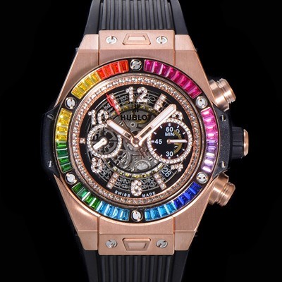 • 레플리카 [휴블렛] 남성용 빅뱅 유니코 45mm 오토매틱 HUB1280 타입 18K 로즈골드 다이아몬드 베젤 러버줄 스켈래톤 다이얼 hub1253