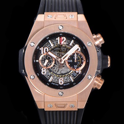 • 레플리카 [휴블렛] 남성용 빅뱅 유니코 45mm 오토매틱 HUB1242 타입 18K 로즈골드 러버줄 스켈래톤 다이얼 hub9293