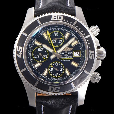 레플리카 [브라이틀링] 남성용 에어로마린 슈퍼오션 어비스 크로노그래프 오토매틱 Eta7750-2 타입 44mm 가죽줄 블랙다이얼 bre0662 요약정보 및 구매