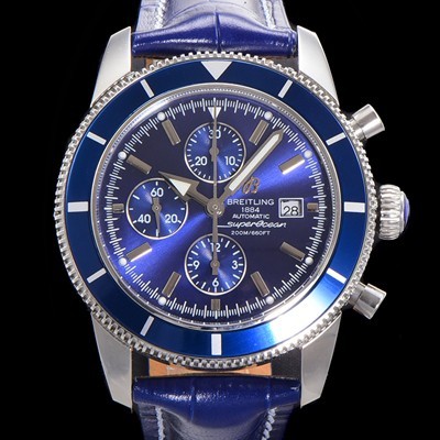 레플리카 [브라이틀링] 남성용 슈퍼오션 해리티지 크로노그래프 ETA7750-2 타입 오토매틱 46mm 가죽줄 블루다이얼 bre6946