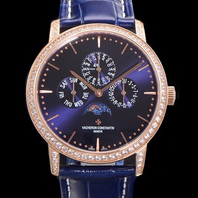 Vacheron Constantin Patrimony Diamond Setting 18K Rose Gold Noonpase Automatic 1120 Type 41mm Mens Blue Dial