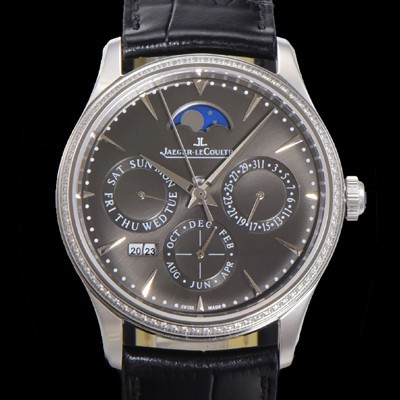 Jager-LeCoultre Master Ultra Thin Perpetual Calendar Automatic MC868 Type 39mm Mens Diamond Bezel Display Grey Dial