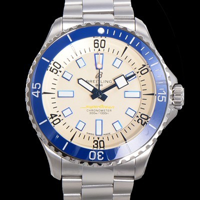 레플리카 [브라이틀링 뉴 다이버워치] 남성용 슈퍼오션 44mm 오토매틱 ETA2824-2 타입 크로노미터 메탈줄 세라믹베젤 아이보리 다이얼  bre44927