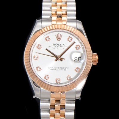 Rolex Date-Just Oyster Perpetual 31mm Ladies Automatic 18K Rose Gold TWO-TONE Combi White Dial
