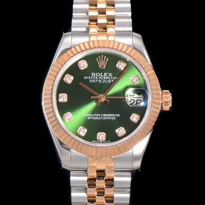 레플리카 [로렉스] 여성용 데이져스트 오이스터 31mm 레이디 오토매틱  18K 로즈골드 투톤콤비 5열 브레이슬릿 메탈줄 화이트 블루다이얼 rol27368