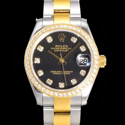 Rolex Date-Just Oyster Perpetual 31mm Ladies Automatic Diamond Bezel 18K Yellow Gold TWO-TONE Combi Balck Dial