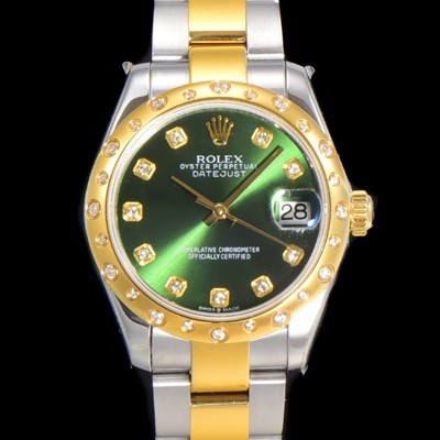 Rolex Date-Just Oyster Perpetual 31mm Ladies Automatic Diamond Bezel 18K Yellow Gold TWO-TONE Combi Green Dial