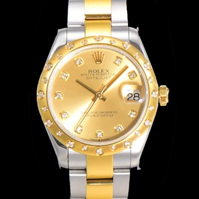 Rolex Date-Just Oyster Perpetual 31mm Ladies Automatic Diamond Bezel 18K Yellow Gold TWO-TONE Combi Gold Dial
