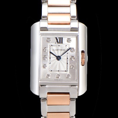 • 레플리카 [까르띠에] 남여공용 탱크 앙글레즈 미듐/라지 오토매틱/쿼츠 18K 로즈골드 36mm/30mm 메탈줄 물결 실버다이얼 car34019