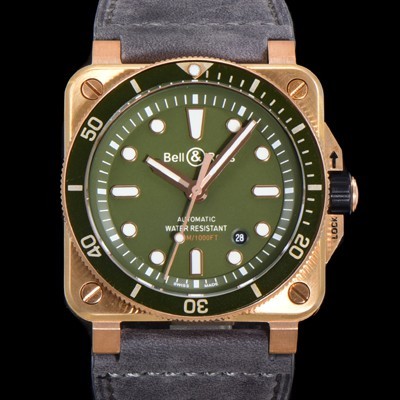 • 레플리카 [벨앤로즈] 남성용 BR03-92 다이버 브론즈 소재 세라믹 베젤 오토매틱 9015 타입 42mm 가죽줄 그린 다이얼 bel4095