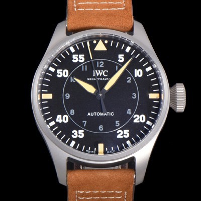 IWC Men's Big Pilot's Watch Bronze Spitfire 43mm Case Automatic 9015 Type Leather Strap Black Dial