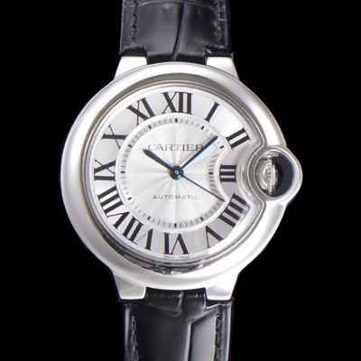 레플리카 [까르띠에] 여성용 신상 발롱블루 W6920085 가죽줄 화이트 다이얼 33mm 오토매틱 무브먼트 CAR0147