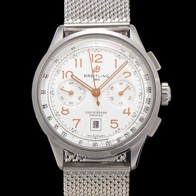 Breitling Men's Premier Chronograph 7750 Type Automatic 42mm Mesh Band White Dial