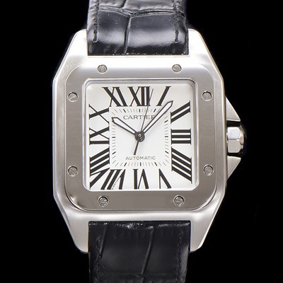 Cartier Santos 100 Automatic ETA2824-2 Type Men's 51mm Leather Strap White Dial