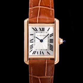 • 레플리카 [까르띠에] 여성용 신상 탱크 WGTA0010 실버 다이얼 29mm 로즈골드 악어가죽 쿼츠 무브먼트 car69356