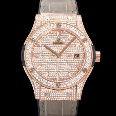 Hublet Men's Classic Fusion Diamond Setting Cubic/Gem Dial 18K Rose Gold 42mm Automatic 2892 Type Leather/Urethane Mix Band
