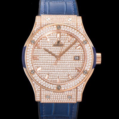 Hublet Men's Classic Fusion Diamond Setting Cubic/Gem Dial 18K Rose Gold 42mm Automatic 2892 Type Leather/Urethane Mix Band
