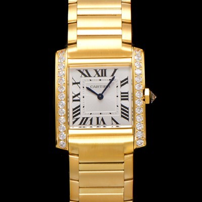Cartier Men's Tank "Française Watch!!" Diamond Medium Model Yellow Gold Quartz Movement White Dial