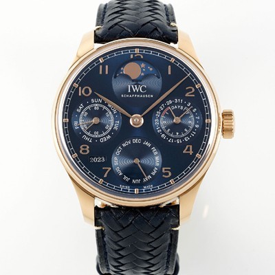 레플리카 [아이더블유씨] 남성용 포루투기즈 IW503312 퍼페추얼 캘린더 싱글 문 44mm 18k 로즈골드 오토매틱 무브먼트 블루 다이얼 iwc4109