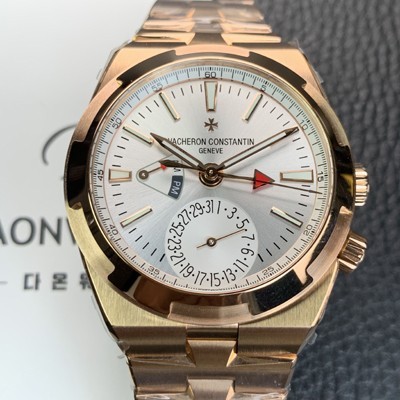 • 레플리카 [바쉐런 콘스탄틴] 남성용 오버시즈 듀얼타임 18K 로즈골드 오토매틱 칼리버 5200 타입 41mm 메탈줄 실버 다이얼 vac1173