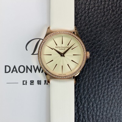 • 레플리카 [파텍필립] 여성용 칼라트라바 4897R-010 나토천/가죽줄 18K 로즈골드 33mm 오토매틱 Cal.324 타입 크림 다이얼 pat2250