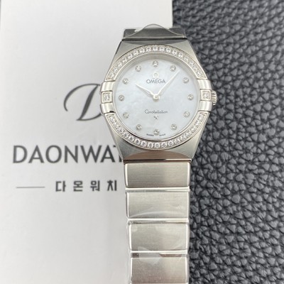 레플리카 [오메가] 여성용 컨스틀레이션 맨해튼 131.15.28.60.55.001 다이아몬드 세팅 베젤 28mm 쿼츠 Cal.4061무브먼트 화이트 자개 다이얼 omg0222