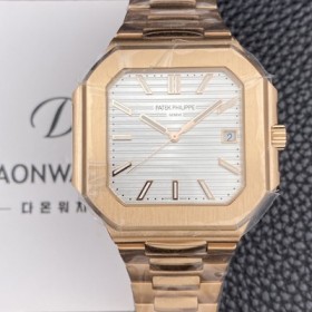• 레플리카 [파텝필립] 남성용 큐비투스 데이트 Ref.5821 18K 로즈골드 45mm 오토매틱 Cal.26-330 SC 타입 화이트 다이얼 pat2258